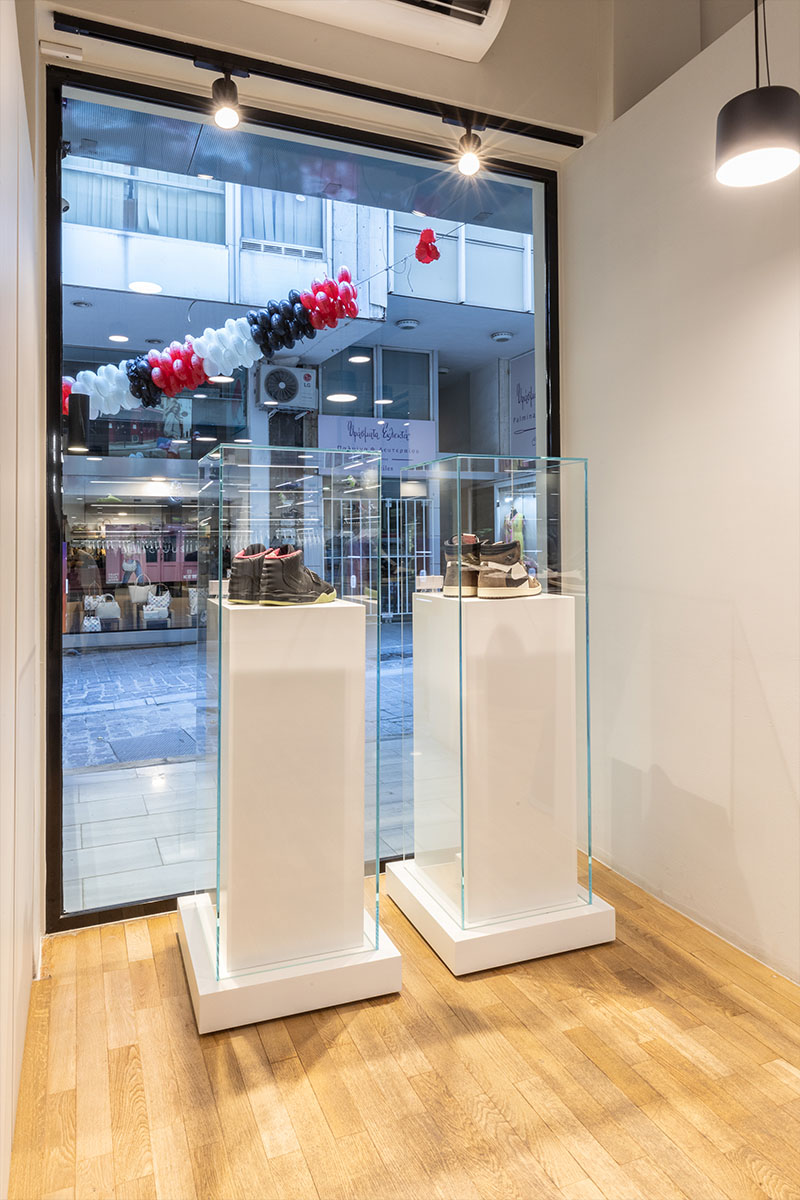 Σχεδιάσαμε και διαμορφώσαμε εξ ολοκλήρου κατάστημα υποδημάτων, δημιουργώντας έναν εντυπωσιακό και εμπνευσμένο χώρο που καθηλώνει τους λάτρεις των παπουτσιών.