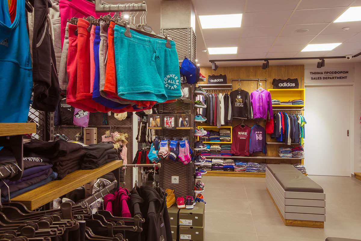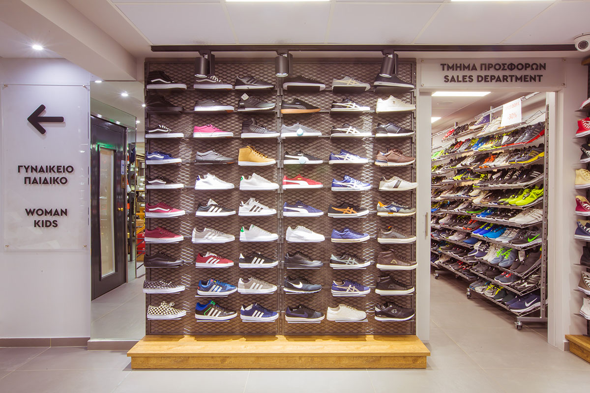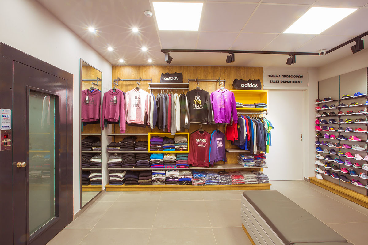 Στα καταστήματα αθλητικών ειδών οι ανάγκες προβολής αναπροσαρμόζονται διαρκώς λόγω εποχικότητας. Για το λόγο αυτό τοποθετούμε εξοπλισμό καταστημάτων με απεριόριστες δυνατότητες προβολής. Σε οποιοδήποτε σημείο του καταστήματος υπάρχει η δυνατότητα προβολής είτε ρούχου είτε υποδήματος χάρις στα ευέλικτα συστήματα με τα αντίστοιχα εξαρτήματα προβολής.