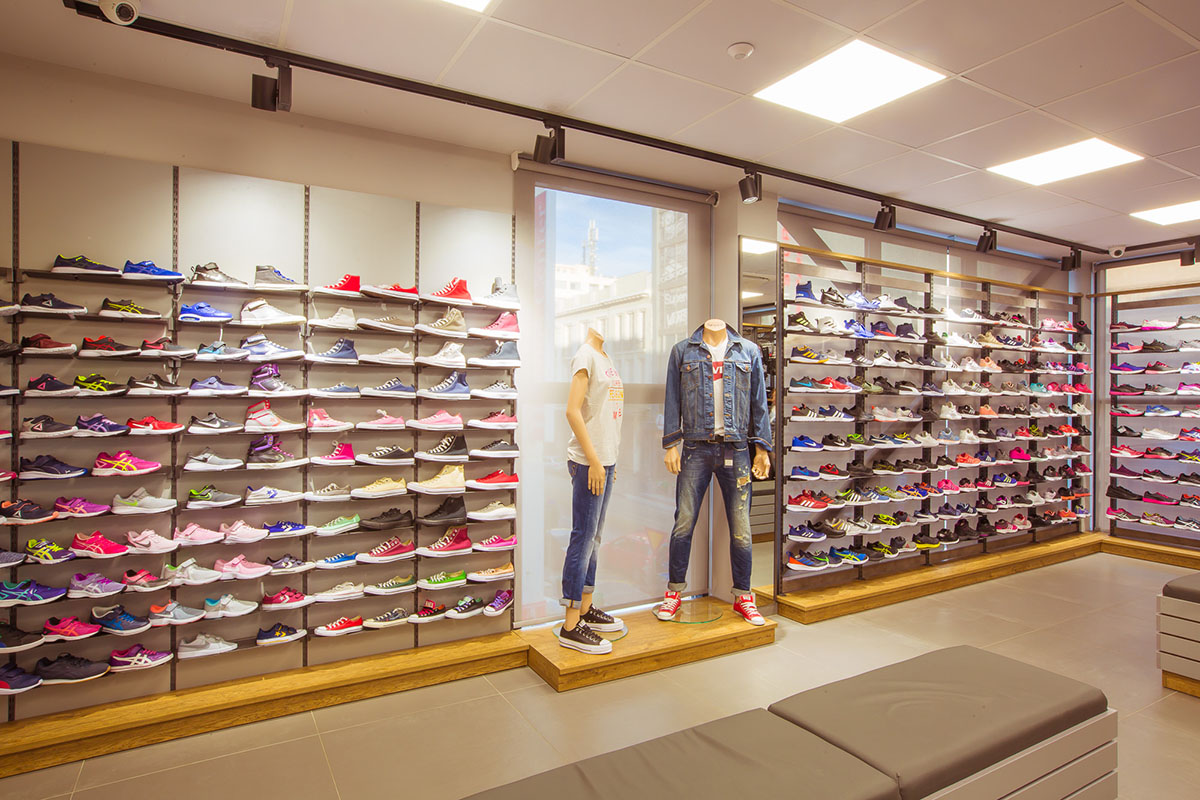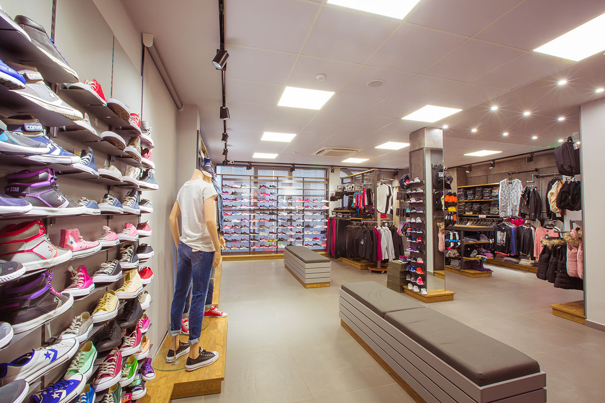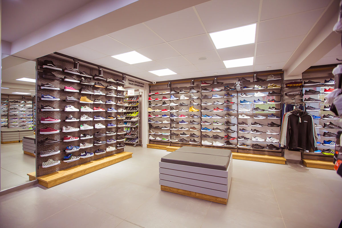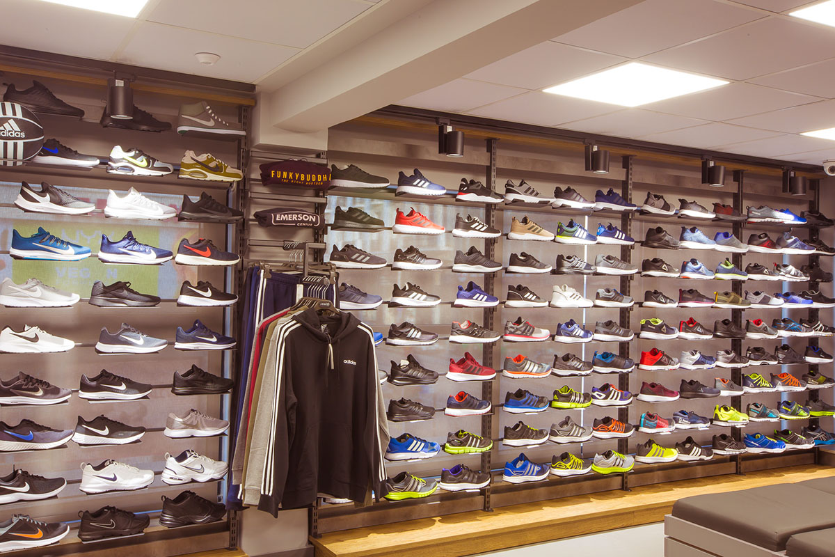 Στα καταστήματα αθλητικών ειδών οι ανάγκες προβολής αναπροσαρμόζονται διαρκώς λόγω εποχικότητας. Για το λόγο αυτό τοποθετούμε εξοπλισμό καταστημάτων με απεριόριστες δυνατότητες προβολής. Σε οποιοδήποτε σημείο του καταστήματος υπάρχει η δυνατότητα προβολής είτε ρούχου είτε υποδήματος χάρις στα ευέλικτα συστήματα με τα αντίστοιχα εξαρτήματα προβολής.