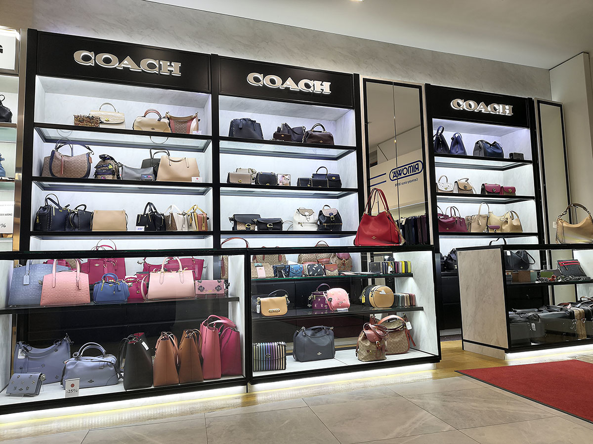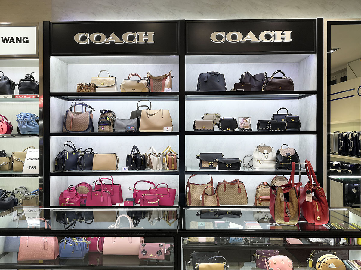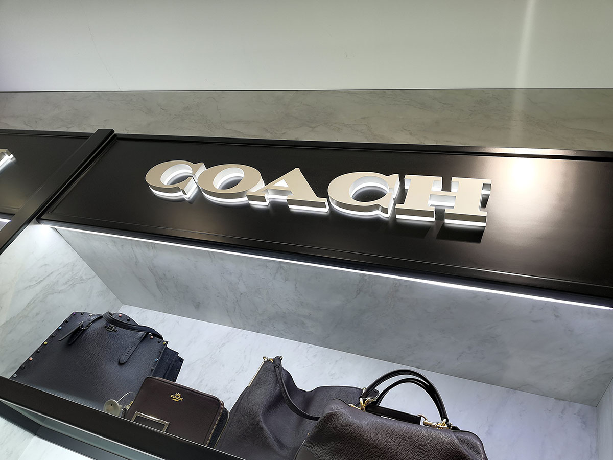 Για τις ανάγκες σήμανσης του λογότυπου COACH σχεδιάσαμε και τοποθετήσαμε 3d μεταλλικά γράμματα με ακρυλική πλάτη και κρυφό φωτισμό. Το λογότυπο τοποθετήθηκε πάνω σε μαύρη λακαριστή πλάτη.