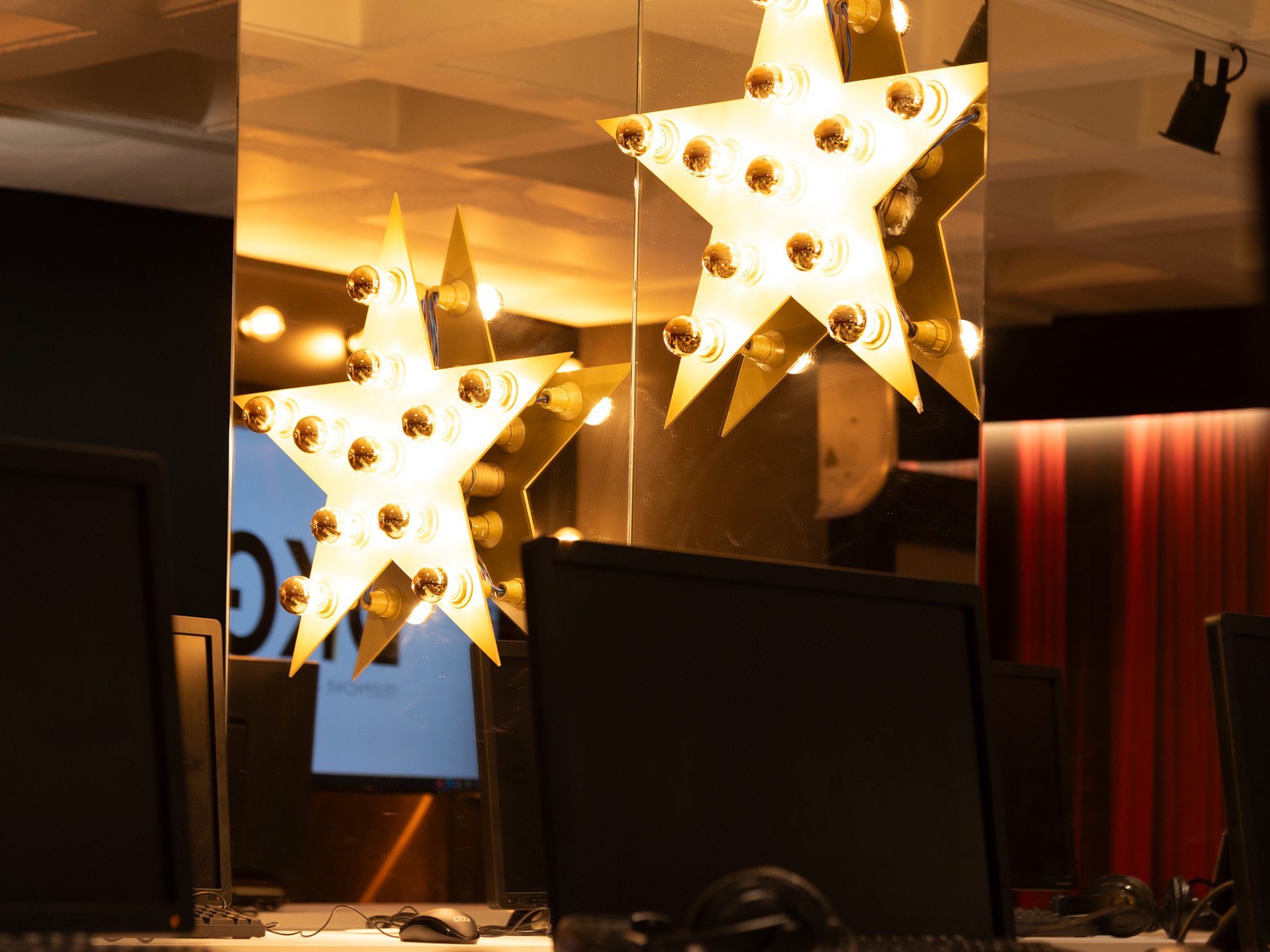 Πιο αναλυτικά στο υπόγειο με θεματολογία Broadway επιλέχθηκαν ψηφιακές εκτυπώσεις περιμετρικά με θέμα τη Νέα Υόρκη καθώς και μια θεατρική κουρτίνα σε μπορντώ απόχρωση. Επιπλέον τοποθετήθηκε μια κατασκευή που παραπέμπει σε καθρέπτη καμαρινιού με περιμετρικούς λαμπτήρες ενώ βινυλικό δάπεδο σε σχήμα σκακιέρας εφαρμόστηκε σε όλο το χώρο.